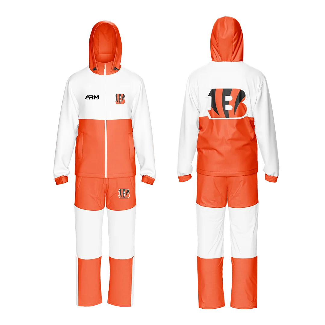 The jacket is designed with a modern athletic fit, secure front zipper, and functional pockets for convenience. The matching pants feature an adjustable waistband for a comfortable fit and a streamlined design for a sharp, sporty look. Durable stitching and high-quality finishing ensure long-lasting performance even with regular use.